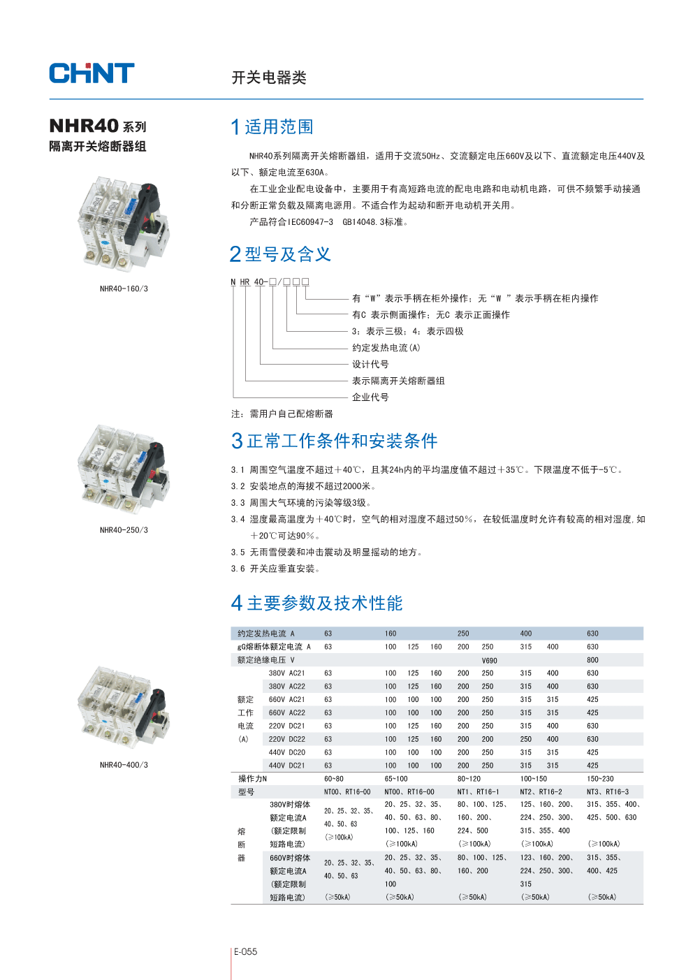 NHR40-630/3,NHR40系列隔离开关熔断器组,CHINT正泰代理